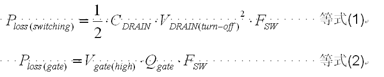对于功率低于75 W的适配器而言,在工作能效提升方面,首先就需要考虑其损耗来源。事实上,其损耗主要包括两个方面,分别是开关损耗和门电荷(Qgate)损耗,这两类损耗分别可以用等式(1)和等式(2)来量化: