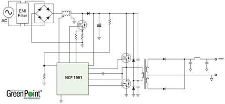 NCP1901半桥谐振段工作在固定的频率和占空比,从而降低开关损耗。这器件通过调制半桥电源段实现稳压,而其在初级端的稳压消除了反馈环路,简化了电路。安森美半导体并基于NCP1901推出新的90 W笔记本适配器参考设计,如图3所示。这参考设计在115 Vac和230 Vac输入条件下测得的工作能效分别为89.4%和90.9%,115 Vac条件下的空载能耗为420 mW,且符合IEC61000-3-2要求的EPA 2.0规范对功率因数的要求(即115 Vac条件下功率因数不低于0.9),以及EPA 2.0对工作能效的要求。