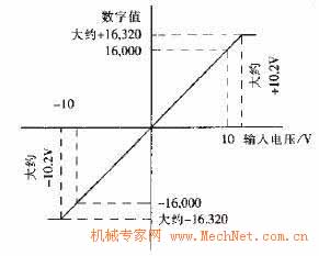 图4是FX2N-8AD的标准1/0特性,电压输入-10V到+10V,使用0~+10V直流稳压器。