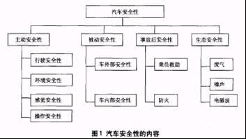 汽车安全性一般分为主动安全性、被动安全性、事故后安全性和生态安全性。