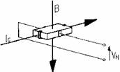 在这两个边缘之间产生的霍尔电压VH与控制电流IC和磁通量B直接成正比(图1)。霍尔发生器由一片薄传导材料制成,如砷化镓(GaAs),这种材料在使用期间能够实现可靠稳定的性能。在5mA的控制电流下,获得的霍尔电压约为1.25mV/mT。
