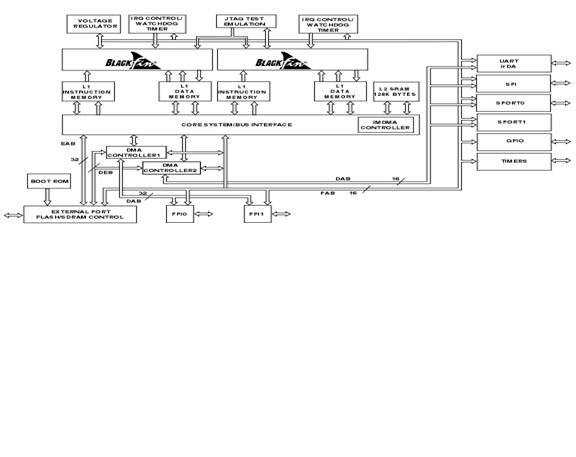 图1:双核数字信号处理器ADSP-BF561芯片内部功能方块图。