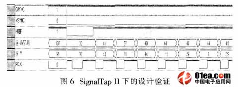 为了验证该系统工作,使用SignalTap II实时测试。通过JTAG把图像数据读回PC机鬼知道,实时监测图像采集卡所采集的图像数据。具体的图像数据的采集验证如图6所示。