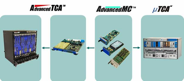 图1. AMC模块分别在ATCA和MicroTCA系统中的应用。