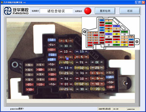 汽车保险丝盒实时装配检测,是多路基于IEEE1394总线的实时图像检测系统。根据不同型号保险丝所具有的颜色和字符特征差异,进行多路保险丝盒装配正确性的实时非接触检测。系统能够识别保险丝盒中保险丝的错装、多装、误装等装配错误,并能提供声音提示和相应的错误标识。系统具有对保险丝盒摆放位置差异的自适应性、多路实时检测、抗干扰能力强和检测准确率高等优点。