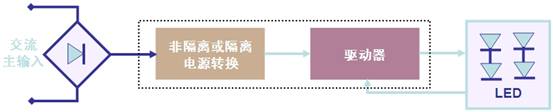 值得一提的是,在LED照明设计中,AC-DC电源转换与恒流驱动这两部分电路可以采用不同配置:1)整体式(integral)配置,即两者融合在一起,均位于照明灯具内,这种配置的优势包括优化能效及简化安装等;2)分布式(distributed)配置,即两者单独存在,这种配置简化安全考虑,并增加灵活性。