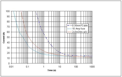 熔断器的工作原则是一个简单的I2R与时间的关系。电流越大,熔断或开路时间越短。熔断器的功耗与通过熔断器的电流的平方成正比。当功耗过高时,熔断器熔断。这个特性同样适用于受熔断器保护的线束。当熔断器的“熔断”特性与所保护的线束相似,只是处理电流能力略低时,熔断器是一个理想的选择。