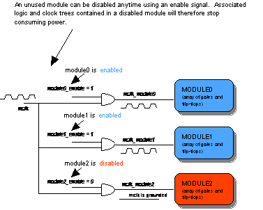 图2. 可以使用激活信号随时禁用未使用的模块。被禁用的模块中包含的相关逻辑和时钟树会因此停止消耗能量。