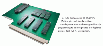 市场上硬件和软件产品关键是具备成功的边界扫描应用。JTAG科技公司的JT 37x7/APC插入到安捷伦3070中,这是一种在自动测试设备(ATE)电路板测试中广泛使用的ICT产品(图4)。