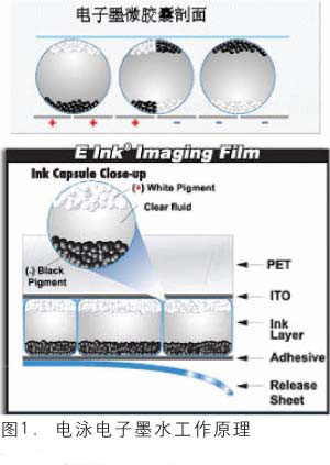 E-Ink的电子纸由电子墨水及两片基板所组成。电子墨水是一种加工成薄膜状的专用材料,与电子显示设备结合在一起使用。