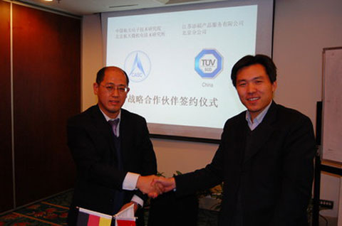 近期,TUV南德意志集团北京分公司与中国航天电子技术研究院北京航天微机电技术研究所(以下简称航天所),就民用产品功能安全认证签署了战略合作协议草签稿,为双方在人员培训、实验室合作、品牌推广授权、设计咨询、检测与认证等领域的深度合作打下的坚实的基础,标志着双方的合作迎来了一个新的里程碑。