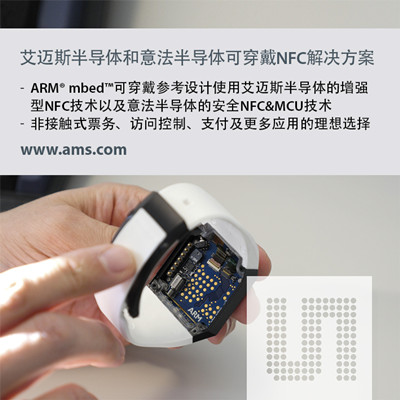 中国,2016年3月8日,全球领先的高性能传感器和模拟IC解决方案供应商艾迈斯半导体公司(ams AG,SIX股票代码:AMS),以及横跨多重电子应用领域、全球领先的半导体供应商意法半导体(STMicroelectronics,简称:ST;纽约证券交易所代码:STM),今日宣布ARM新的穿戴式参考设计选用两家公司的NFC解决方案提供安全、高性能的NFC和微控制器功能。