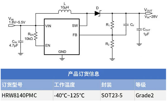 HRW8140PMC 型低功耗高压非同步升压转换器